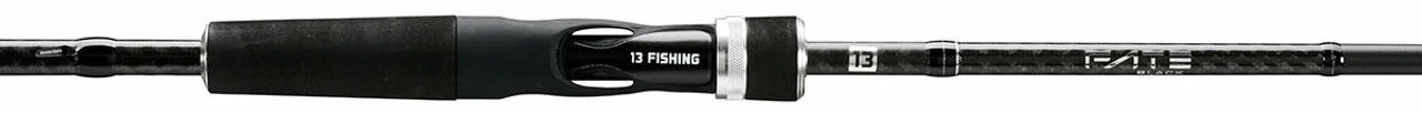 Returning to the lineup with a new and improved design, the 13 Fishing Fate Black 3 Casting Rods offer versatile bass fishing performance like few others in their price range. Maintaining the performance tuned tapers that the Fate Black series is known for, the third generation features fast action casting models built on 30 Ton Japanese PVG30T carbon blanks for superior sensitivity and a responsive feel. New to the Fate Black series are 3 cranking models built on CGE2 Carbon Glass Elastomer blanks that combine E Glass Elastomers with 30 ton graphite resulting in a composite with the parabolic blank characteristics of E Glass and the lightness of graphite. The blanks are wrapped with Evolve Stainless Steel Alconite guides that offer excellent castability. All models are fitted with high density EVA handles in a split grip configuration, along with an Evolve Soft Touch Ported Reel Seat that keeps the rod light in the hand and exposes the bottom of the blank for uninhibited transmission of vibrations. Cosmetically, the Fate Black 3 has returned to its roots with a sleek all black design with striking chrome accenting.