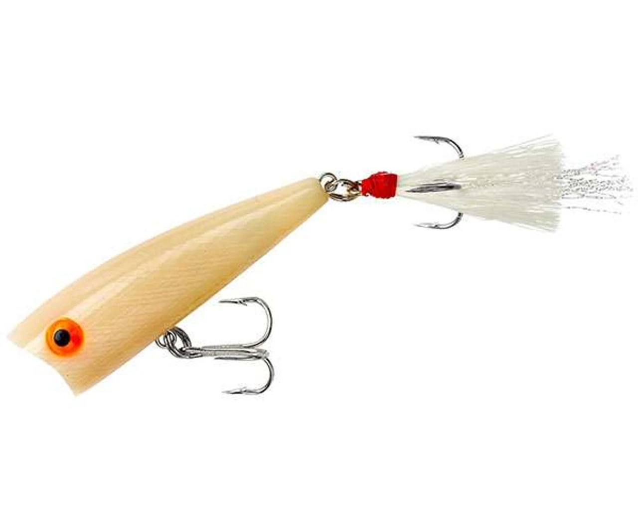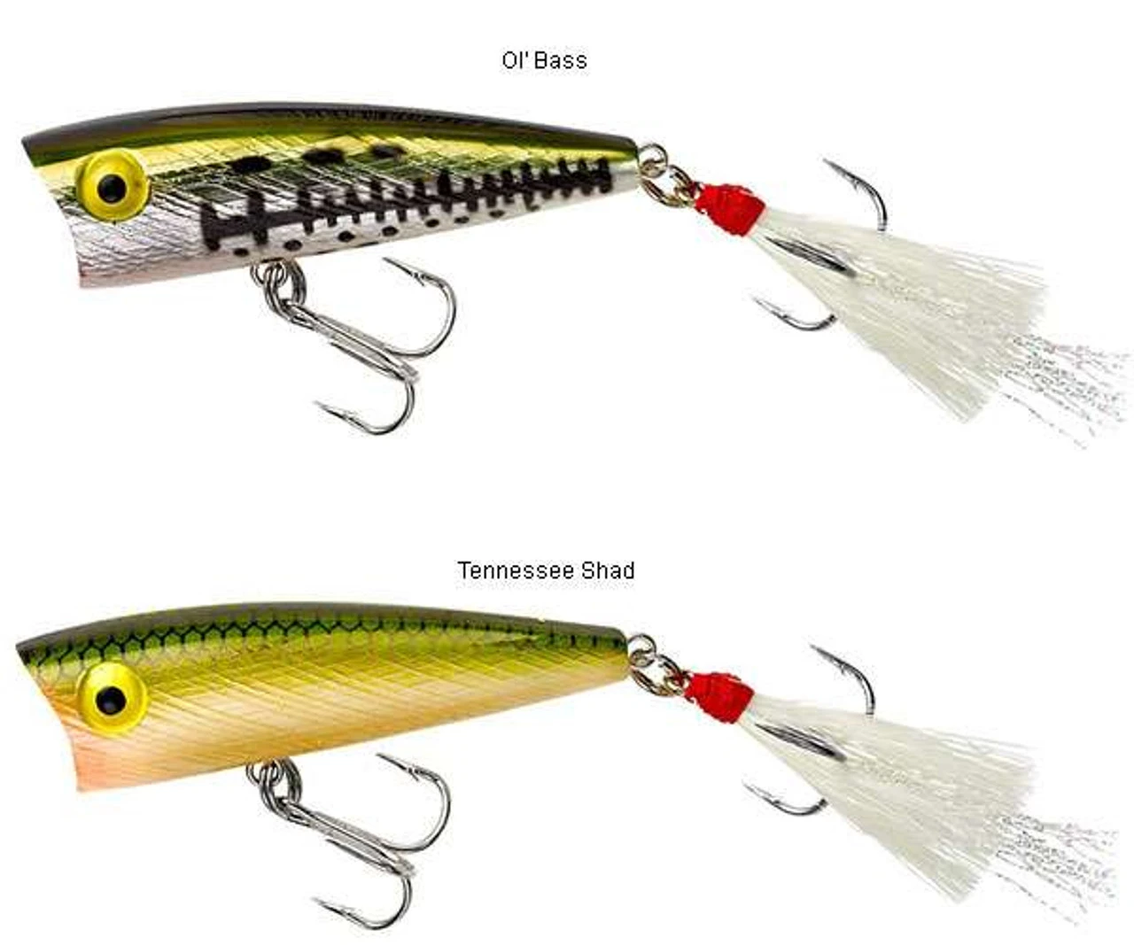 The Rebel P50 Teeny Pop-R has all of the features that made the larger version the most infamous lure in bass tournament history. The dressed back treble of the Rebel P50 Teeny Pop-R features flashy mylar, and the concave mouth chugs and pops on the surface to attract strikes. This small size catches bass, panfish and other gamefish with some of the most exciting topwater strikes youβll ever experience.